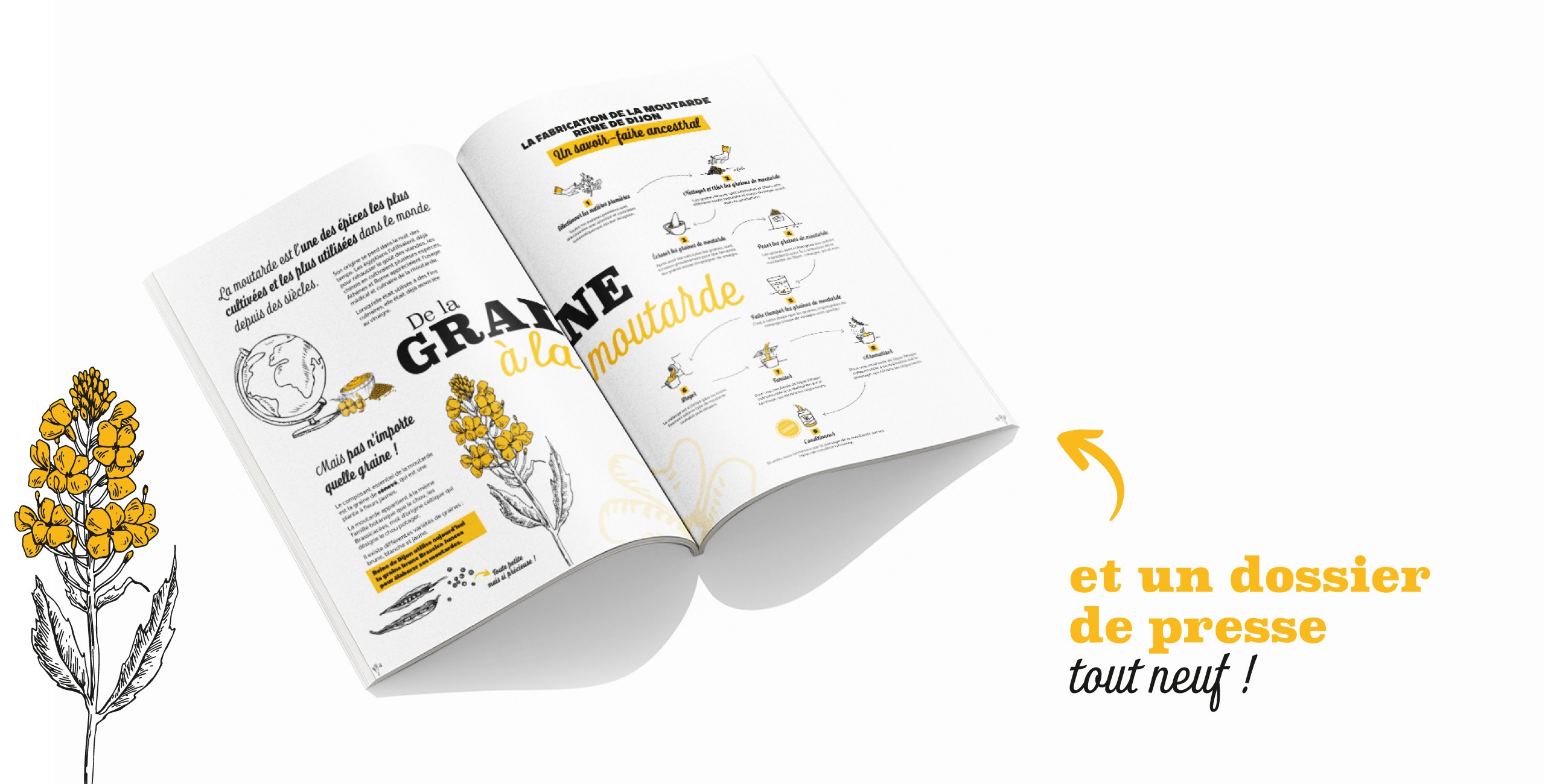- Définition d’un message fort : “Acteur de la filière agricole locale”, en lien avec l’AMB (Association Moutarde de Bourgogne), l’IGP Moutarde de Bourgogne et le label Savoir-Faire 100% Côte-d’Or