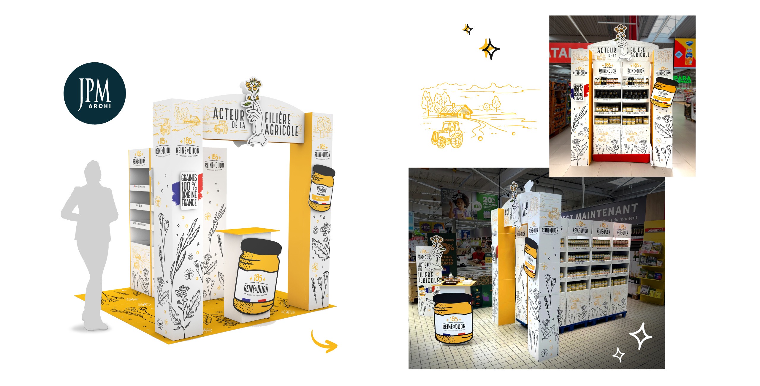 - Études, benchmarks et modélisations 3D pour tester différentes options (meuble spécifique, PLV promo, matériaux réutilisables…)